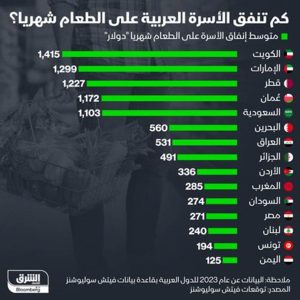 كم تنفق الأسرة العربية على الطعام شهرياً؟ – المصدر: بلومبرغ
