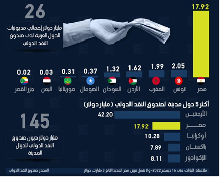 حجم إجمالي ديون صندوق النقد الدولي على الدول العربية 26 مليار دولار
