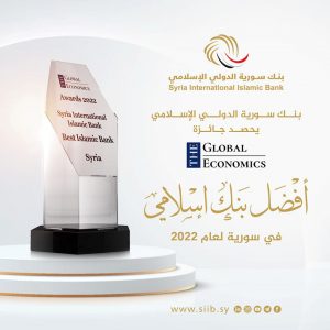 توج بنك سورية الدولي الإسلامي بجائزة أفضل بنك إسلامي في سورية Best Islamic Bank – Syria 2022 وفق تقييم الأداء المصرفي الذي قامت به الجهة المانحة The Global Economics